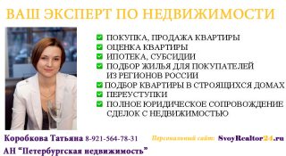 ✔ Для всех желающих ПРОДАТЬ КВАРТИРУ ИЛИ ЗАГОРОДНЫЙ ДОМ - ДАЧУ в Санкт-Петербурге мои услуги риэлтора Коробкова Татьяна